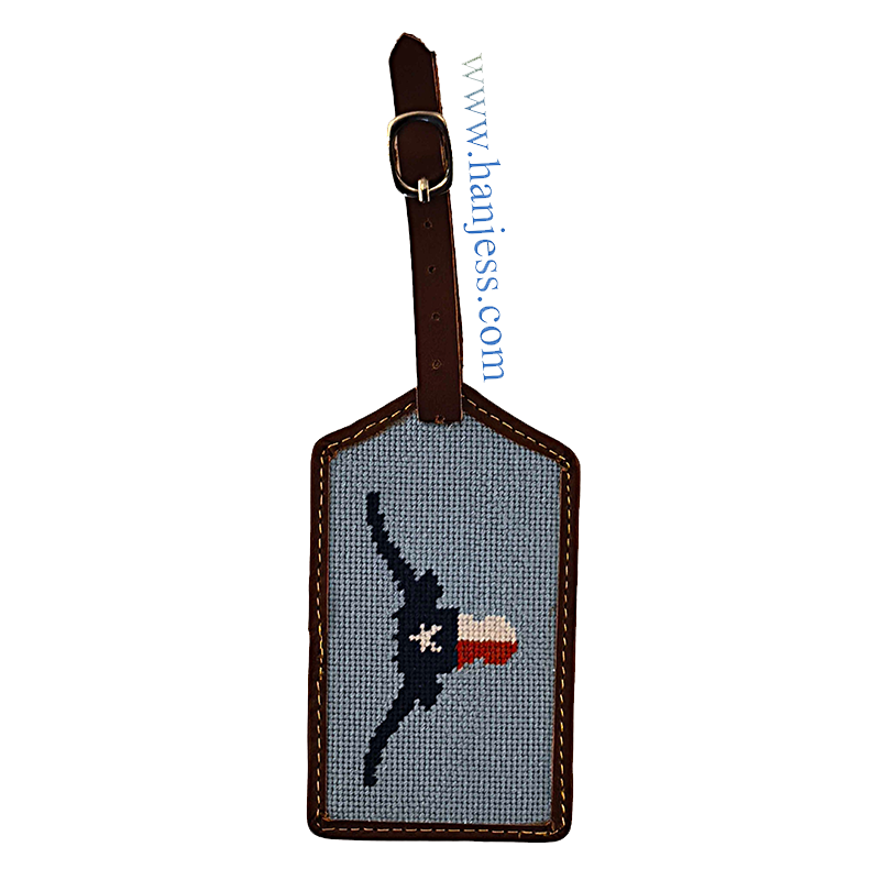 $10.00 - $20Bull Flag Needlepoint Leather Luggage Tag